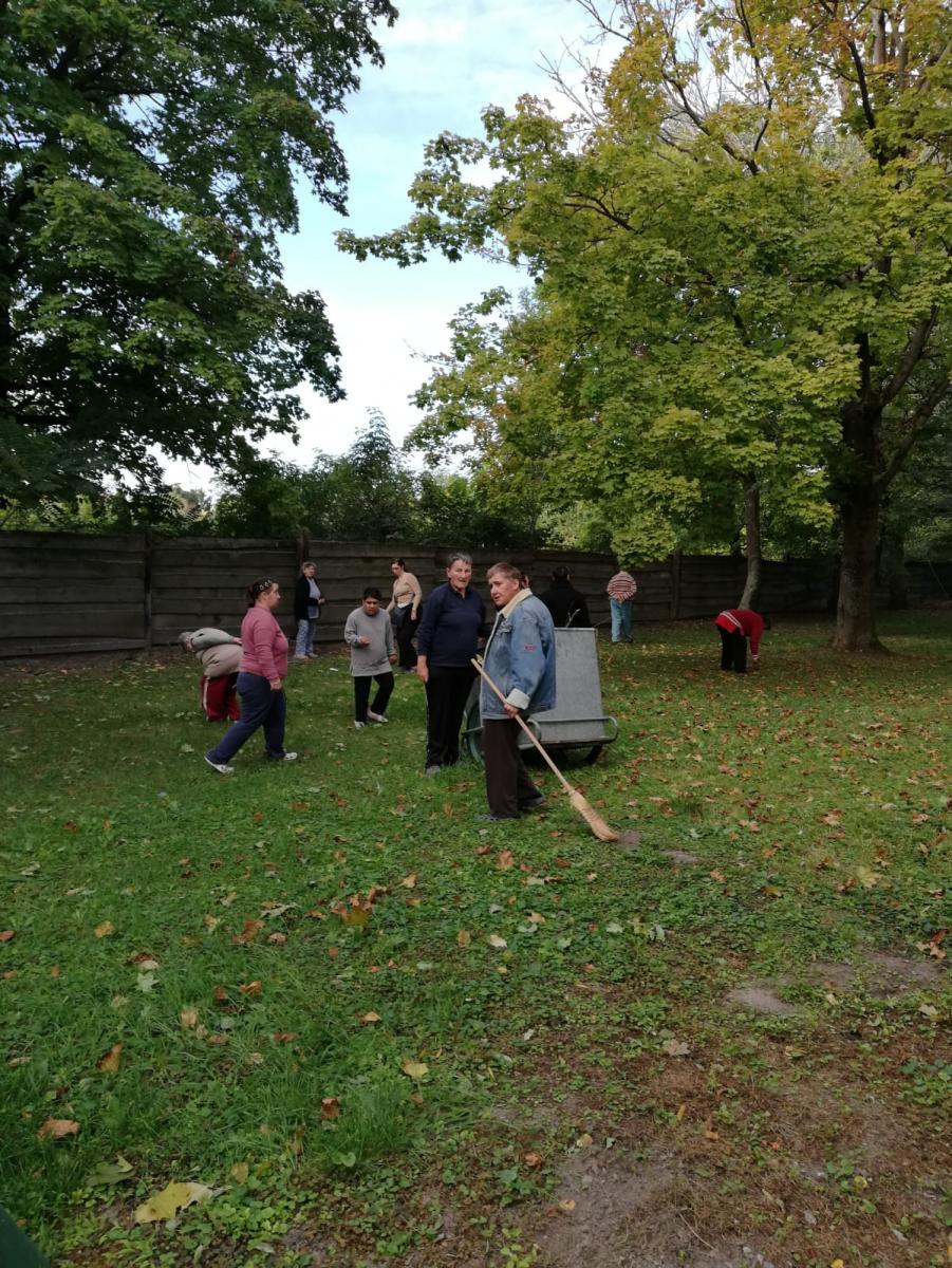Prijímateľky sociálnej služby v priaznivom počasí trávia voľné chvíle v lesoparku zariadenia. Posledné slnečné dni využili v rámci pracovnej terapie na skrášlenie okolia. V predchádzajúci deň bol silný vietor, ktorý polámal konáre v lesoparku a pred zariadením. PSS, ktorým to vek a zdravotný stav dovolil, radi a s nadšením pomohli so zberom opadaných , polámaných konárov, s hrabaním lístia a so zametaním. Ostatné sa s nadšením postarali o kvetinové záhony. Odmenou je pekný areál, kde v letných mesiacoch a keď to počasie dovolí, oddychujú, venujú sa svojim záľubám a môžu posedieť aj s rodinou.